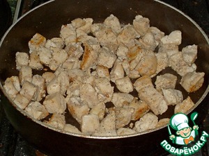 На другой сковороде быстро обжарить до легкой румяности мясо