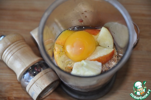 Всё измельчаем и доводим до однородности с помощью блендера или мясорубки.