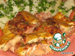 Рецепт «Форель в брусничном маринаде под сырным суфле»: