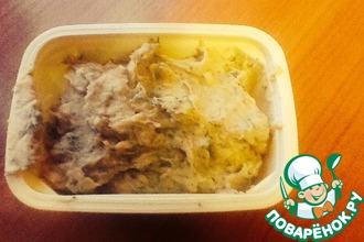 • Творог протираем, добавляем, соль яйца, зелень (масса должна быть соленоватой)