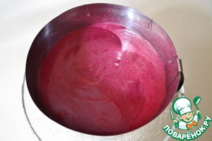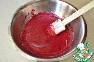 Затем ягодное пюре с добавленным желатином вводим в оставшееся ягодное пюре, предназначенное для мусса. Хорошенько перемешиваем. -
