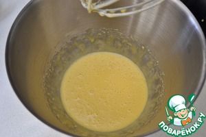 Взбиваем миксером 45 миндальной муки, 75 г сахара, желтки и яйцо. -