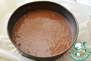 Переливаем смесь в форму диаметром 24 см (дно застелить пергаментом) и выпекаем примерно 15-20 минут. Ориентируйтесь на свою духовку!
