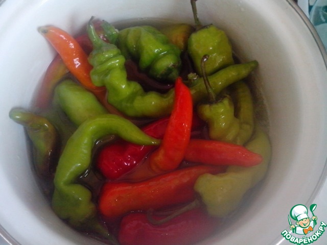 • В воду добавить все ингредиенты, кроме перца, закипятить. В закипевший рассол положить перец и проверить 5 минут.