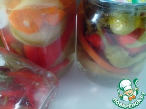• Разложить перец в стерилизованные банки залить рассолом и закатать. Укутать в плед до остывания.