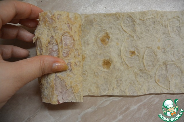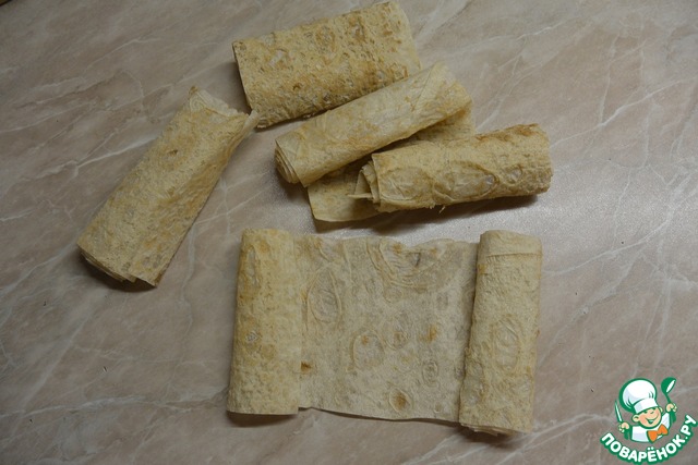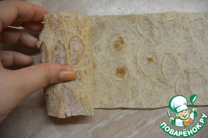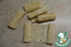 Теперь закрутим рулетики. Это лаваш. У меня 8х20см.