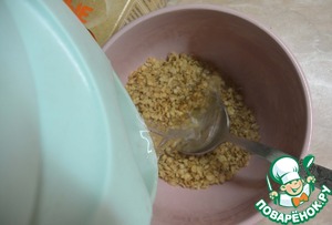 Муку просеять и добавить гречневую смесь. Хорошо размешать.