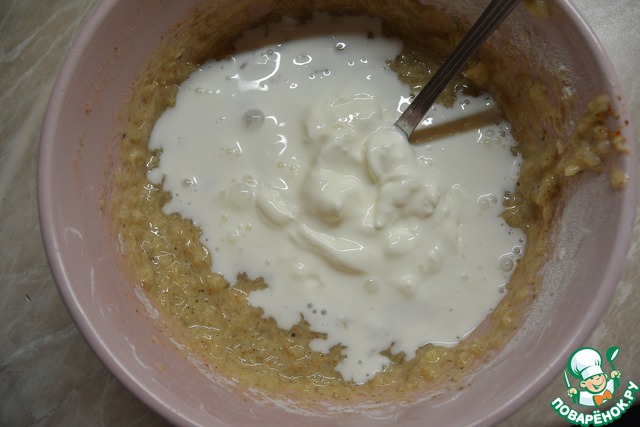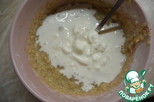 Добавить яйцо и хорошенько растереть. Повторюсь: каша должна быть остывшей.
