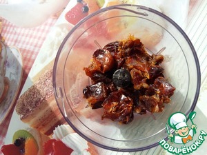 Финики замочить на 30 мин. Затем вынуть из них косточки и размельчить в блендере