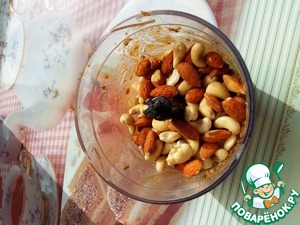 Орехи замочить на 30 мин. Затем немного подсушить на полотенце и размельчить в блендере