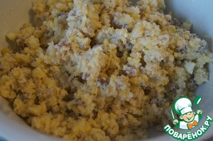 Затем добавить к смеси сливочное масло и растереть в масляную крошку.