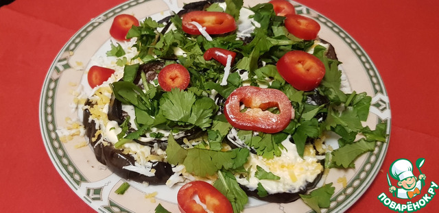 Потом укладываем слоями: баклажаны, немного чеснока растереть по баклажанам, засыпать слой яиц и полить майонезом, затем опять слой баклажан, чеснок, яйца и майонез и так далее.