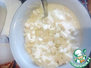 Яблоки нарежьте кубиками и добавьте в тесто. Перемешайте