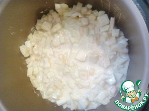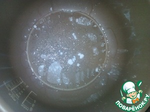 Чашу мультиварки смажьте сливочным маслом, немного посыпьте сахарной пудрой.