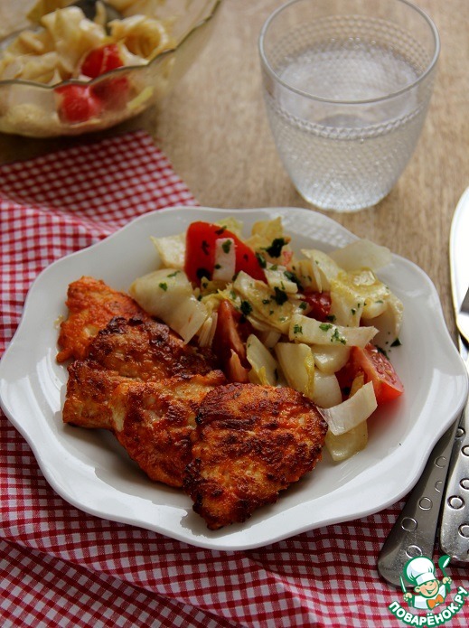 Рецепт «Куриные отбивные в яично-томатном соусе»: