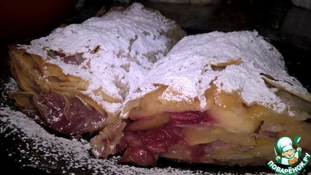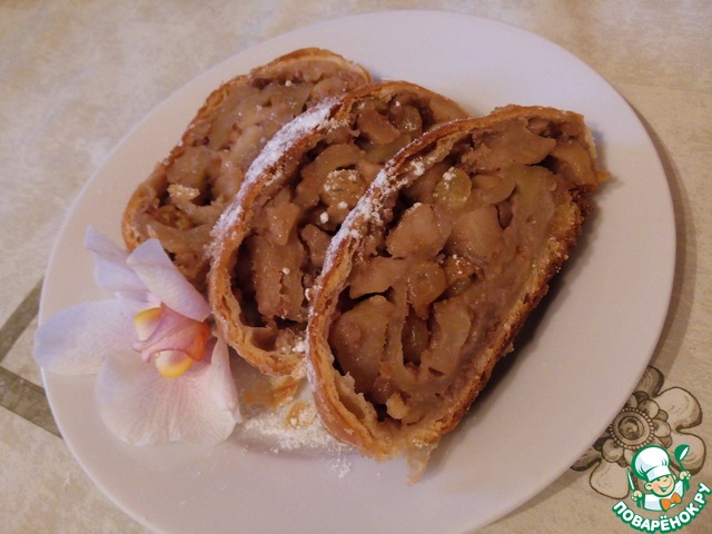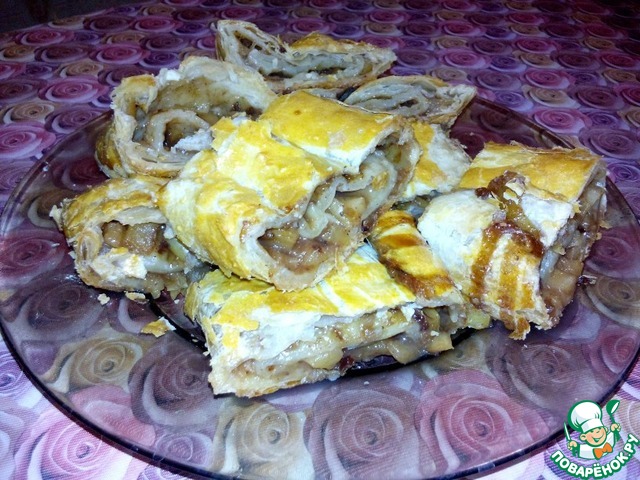 Рецепт «Яблочный штрудель из слоеного теста»: