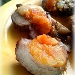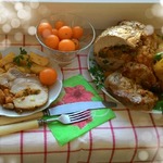 - Масло оливковое (3 ст.л. в маринад для мяса, 2 ст.л. в начинку из кураги,2 ст.л. в картофель.) — 7 ст. л.