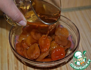 Половину кураги измельчить в блендере, оставшуюся часть порубить ножом. Сок, в котором была замочена курага, не выливаем!
