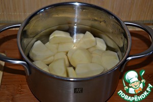 Картофель почистить, порезать довольно крупными кусочками. Варить до полуготовности.