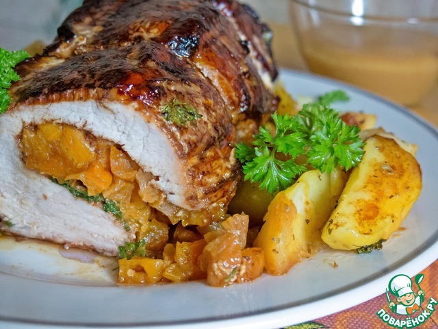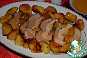 Рецепт «Свинина, запечённая с курагой и картофелем»: