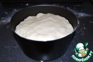Когда тесто начнет подниматься, добавить муки и замесить густое тесто (как на пирожки).