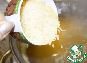 Отварить рис.