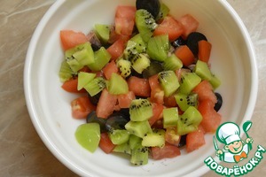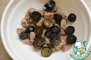 Каждую ягоду винограда нарезать на три части (если крупные).