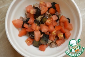 Нарезать кубиками помидоры и
