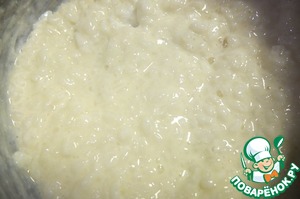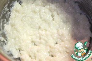 Добавляем промытый рис и варим густую кашу, периодически помешивая, примерно 25-30 мин. Даем каше немного остыть.