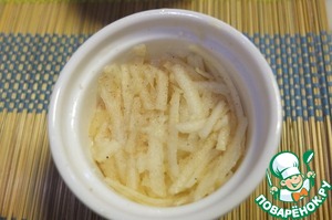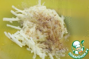 Яблоко натираем на крупной тёрке, добавляем по желанию корицу и кардамон.