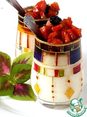 Помните, в детстве застывшую холодную манную кашу поливали вареньем или киселём - и подавали в качестве десерта??? Я решила поэкспериментировать на эту тему, получилось очень вкусно и не банально. Может, и вам понравится?