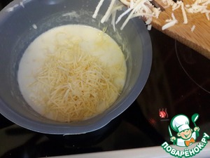 В горячий соус добавить натертый сыр, размешать, чтобы сыр полностью разошелся в соусе