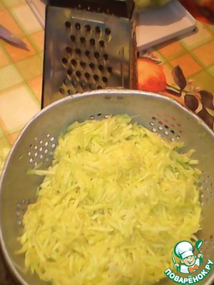 Кабачки трем на терке, перекладываем в дуршлаг и пусть стекает жидкость.