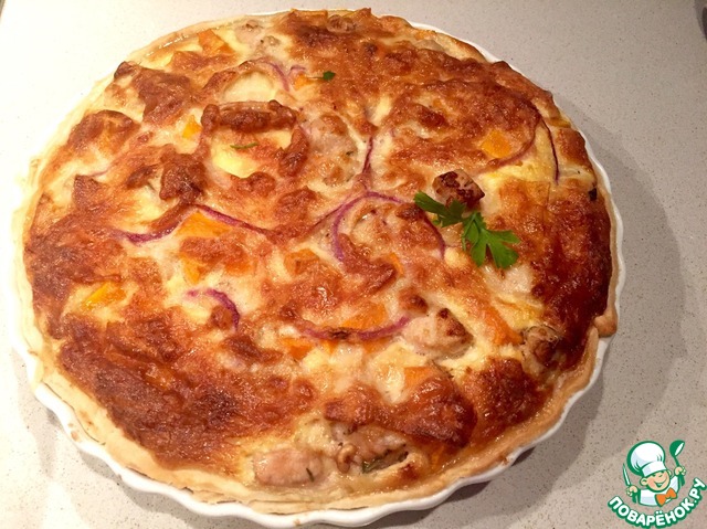 Вот такой сытный пирог для всей семьи предлагаю вашему вниманию. Альпийский А-ля киш. С тыквой и курицей. Минимум приготовлений. Результат потрясающий.