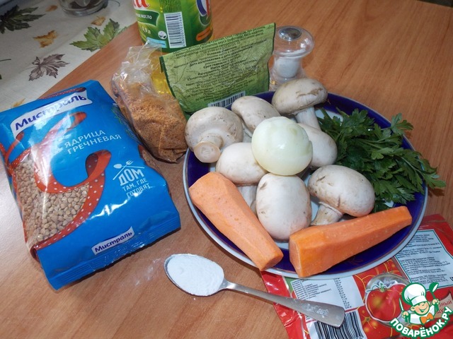 Ингредиенты для «Гречневые тефтели с грибами в томатном соусе»: