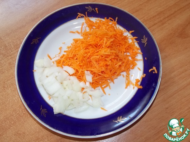 Морковь натереть на мелкой тёрке, половину луковицы нарезать.