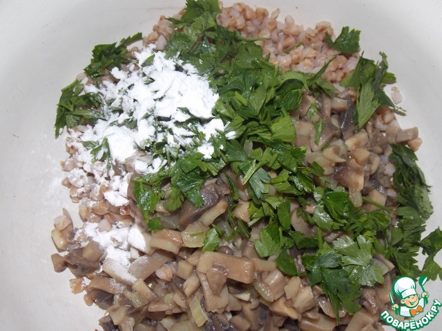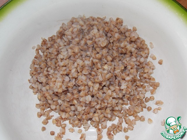 Из гречневой массы сформовать маленькие тефтели, обвалять в сухарях, выложить в смазанную маслом форму для запекания. Если тефтели будут плохо формоваться, можно добавить ещё немного муки.