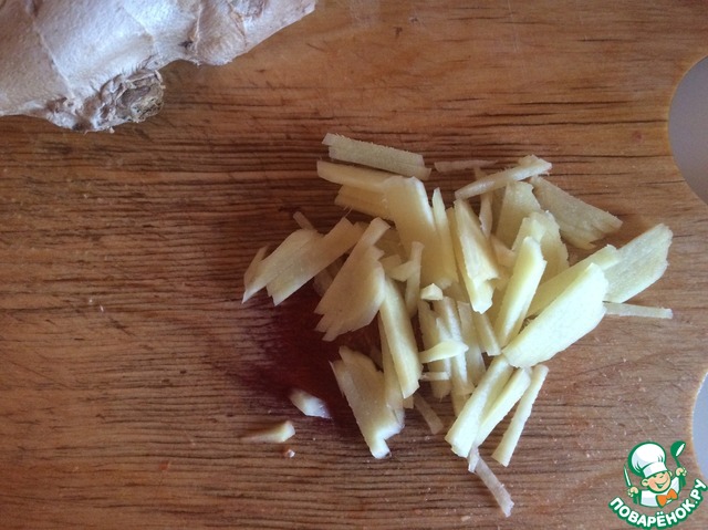 - Имбирь (Имбиря много не нужно, у меня вышло около столовой ложки.) — 1 ломт.