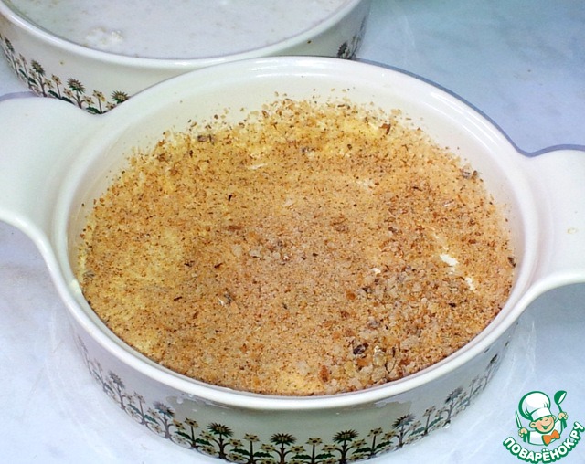 Обсыпала дно и края формы панировочными сухарями.