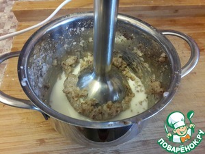 Готовую отваренную крупу измельчить блендером, прибавив молоко