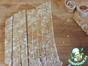 Готовые блинчики нарезать полосками по 1-1,5 см