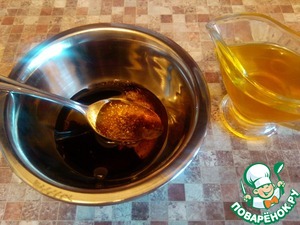 Для заправки смешать лимонный сок, соевый соус и оливковое масло.
