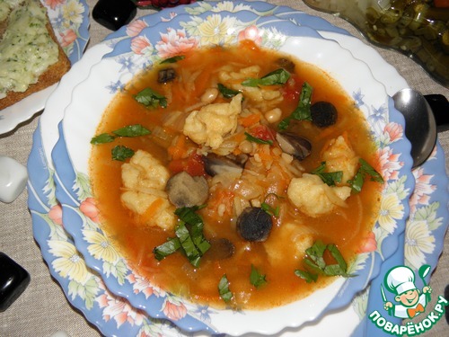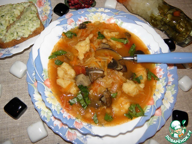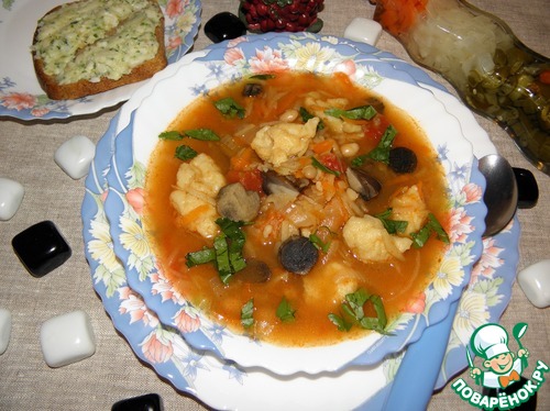 Суп всегда любимый нами, если он богат грибами! Помидоры и фасоль в нем свою играют роль! До того на вкус приятный! Аромат невероятный! И насыщенный такой! Вы попробуйте с семьей! А еще для идеала, чтобы нам всего хватало, клецки мы в конце добавим! И на стол родным поставим! Дорогие, угощайтесь! Должен суп понравиться! За добавку принимайтесь, много не останется!