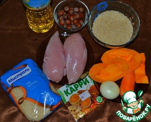 Приготовить продукты. Лук, морковь и тыкву почистить.