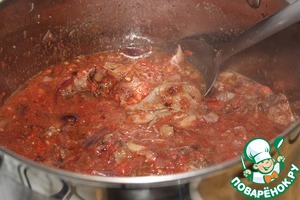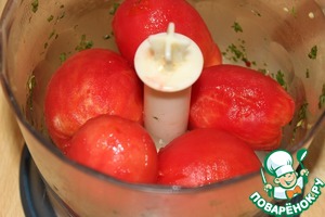 Измельчить помидоры в блендере, добавить в кастрюлю, увеличить огонь до среднего, перемешать и готовить 10 минут.