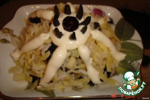 Дочь пришла из гостей и принесла рецепт салата, он конечно на любителя, но я и есть тот любитель всех салатов и думаю что я не одна.