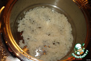 Рис отварить и откинуть на дуршлаг стечь воде.