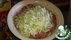 Один кабачок натереть на крупной терке и добавить к мясу.