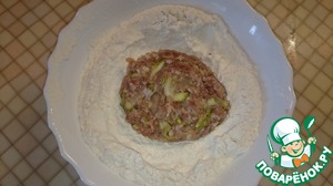 Из полученной массы формируем слегка приплюснутые шарики и обваливаем в муке.