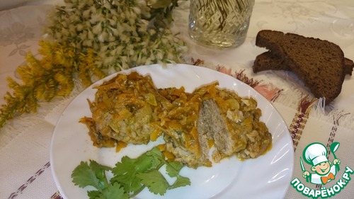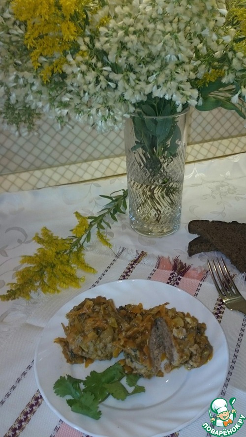 Зажарку выкладываем сверху тефтелей. Потомить 25 минут.